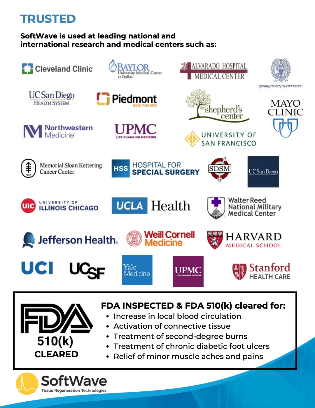 SoftWave Therapy is redefining how we treat pain and support recovery. Backed by clinical research and FDA clearance, this non-invasive treatment is trusted worldwide to help the body heal itself—no surgery, no medications, no injections.